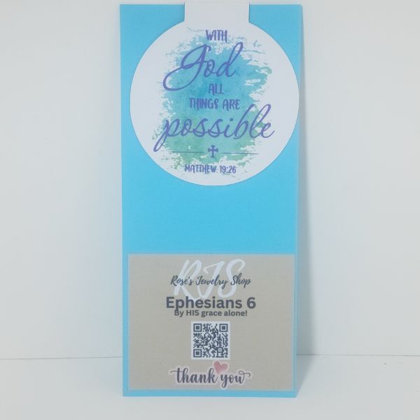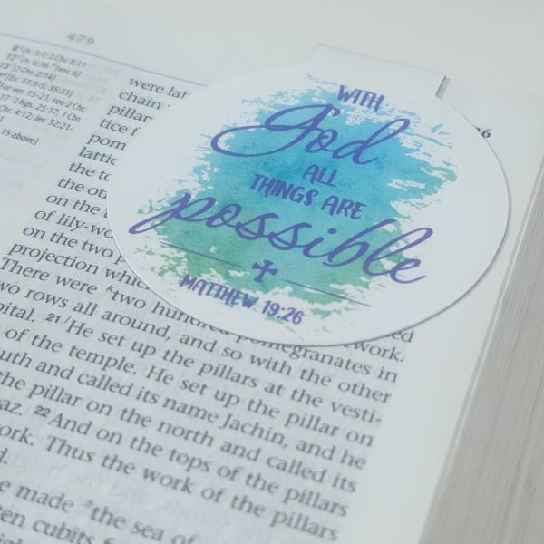 Inspirational Christian Magnetic Bookmark, ‘With God All Things Are Possible’ Bible Verse, Blue Watercolor Design, 6cm x 13cm