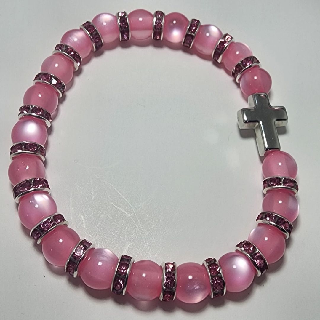 / Pink Bracelet with Rhinestones and Silver Cross